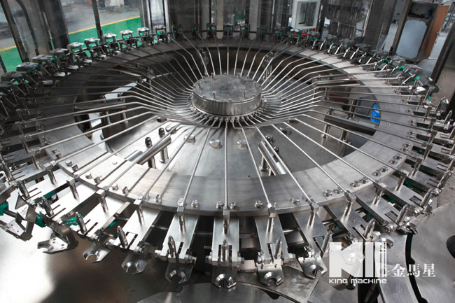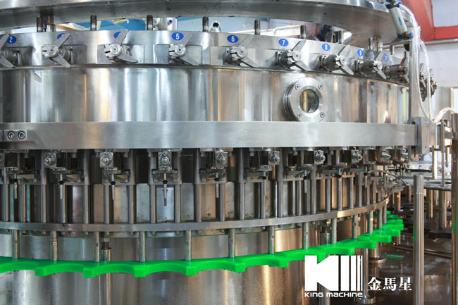 飲用水灌裝機集沖洗、灌裝、旋蓋于一體,全過程自動化運行,主要適用礦泉水、純凈水等不含氣飲料的沖瓶、灌裝、封口連續(xù)作業(yè)。本機大部分電器系統(tǒng)零件均采用國外優(yōu)良產(chǎn)品,所有與液料接觸的地方均采用優(yōu)質(zhì)的不銹鋼材料制作,主關(guān)鍵部件采用數(shù)控機床精密加工, 整機光電檢測各部件的運行狀況,無瓶不灌裝,無瓶不送蓋,自動化程度高,操作簡易,具有耐磨、穩(wěn)定、故障率低等特點,產(chǎn)品質(zhì)量處于行業(yè)前列,是新老飲料投資者的選擇。
