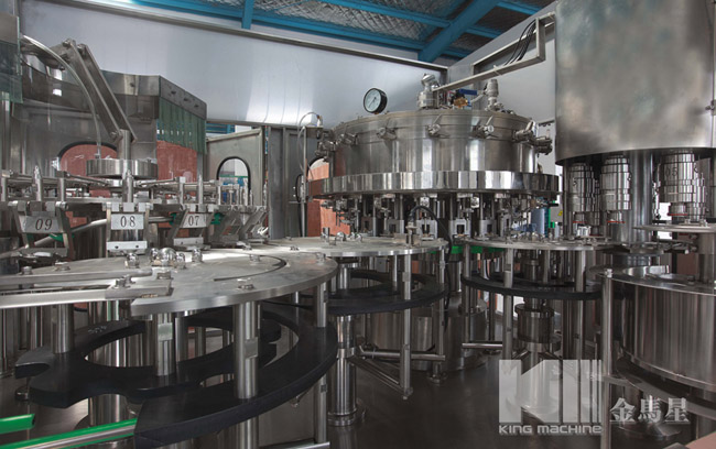 此設(shè)備主要應(yīng)用于灌裝飲料,包含沖瓶、灌裝和旋蓋三大功能。