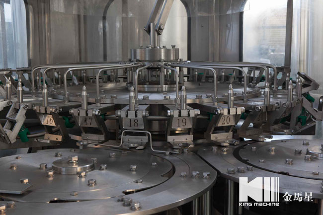 飲用水灌裝機集沖洗、灌裝、旋蓋于一體,全過程自動化運行,主要適用礦泉水、純凈水等不含氣飲料的沖瓶、灌裝、封口連續作業。本機大部分電器系統零件均采用國外優良產品,所有與液料接觸的地方均采用優質的不銹鋼材料制作,主關鍵部件采用數控機床精密加工, 整機光電檢測各部件的運行狀況,無瓶不灌裝,無瓶不送蓋,自動化程度高,操作簡易,具有耐磨、穩定、故障率低等特點,產品質量處于行業前列,是新老飲料投資者的選擇。