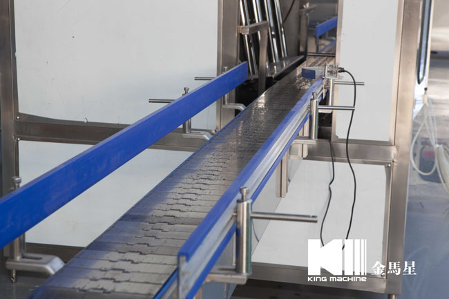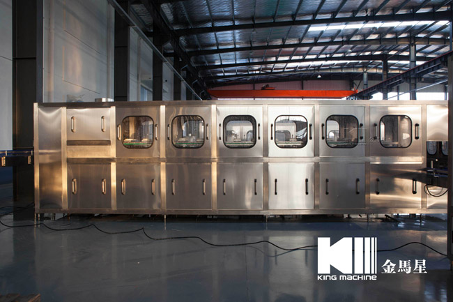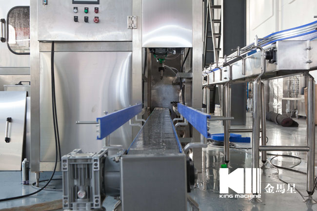 本設備集合了消毒、沖洗、灌裝和壓蓋,合四為一,能夠實現全自動桶裝水旋蓋。沖瓶機使用多種沖品液和消毒液,以保證獲得沖瓶和殺菌效果。消毒液可以循環使用,節省消耗。