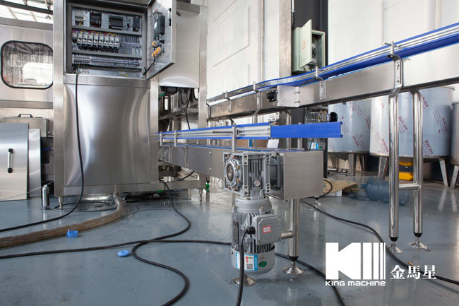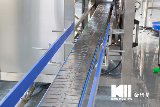 本灌裝生產線專用于3-5加侖桶裝水的灌裝,型號包括了QGF-100,QGF-240,QGF-300,QGF-450,QGF-600,QGF-900,QGF-1200。合消毒、沖洗、灌裝、壓蓋四為一體。沖洗機采用了多種洗液以及消毒液對瓶子進行清洗以及消毒,消毒液能夠循環使用。瓶蓋會在清洗和消毒后運至旋蓋機自動進行旋蓋。本產品功能齊全,涵蓋了清洗、消毒、灌裝、旋蓋、計數等功能,高度自動化,實為飲料生產廠家理想的優選設備。