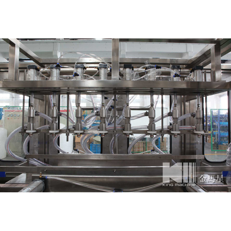 本設備集合了消毒、沖洗、灌裝和壓蓋,合四為一,能夠實現全自動桶裝水旋蓋。沖瓶機使用多種沖品液和消毒液,以保證獲得沖瓶和殺菌效果。消毒液可以循環使用,節省消耗。