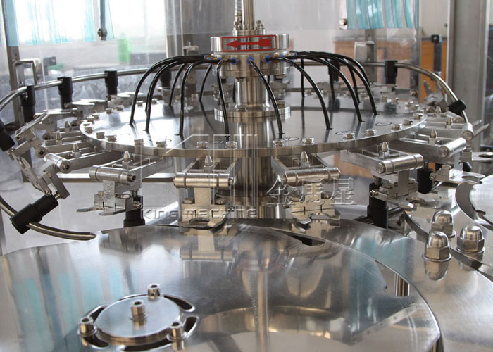 飲用水灌裝機集沖洗、灌裝、旋蓋于一體,全過程自動化運行,主要適用礦泉水、純凈水等不含氣飲料的沖瓶、灌裝、封口連續作業。本機大部分電器系統零件均采用國外優良產品,所有與液料接觸的地方均采用優質的不銹鋼材料制作,主關鍵部件采用數控機床精密加工, 整機光電檢測各部件的運行狀況,無瓶不灌裝,無瓶不送蓋,自動化程度高,操作簡易,具有耐磨、穩定、故障率低等特點,產品質量處于行業前列,是新老飲料投資者的選擇。