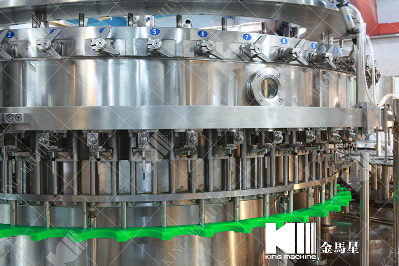 飲用水灌裝機集沖洗、灌裝、旋蓋于一體,全過程自動化運行,主要適用礦泉水、純凈水等不含氣飲料的沖瓶、灌裝、封口連續(xù)作業(yè)。本機大部分電器系統(tǒng)零件均采用國外優(yōu)良產(chǎn)品,所有與液料接觸的地方均采用優(yōu)質(zhì)的不銹鋼材料制作,主關(guān)鍵部件采用數(shù)控機床精密加工, 整機光電檢測各部件的運行狀況,無瓶不灌裝,無瓶不送蓋,自動化程度高,操作簡易,具有耐磨、穩(wěn)定、故障率低等特點,產(chǎn)品質(zhì)量處于行業(yè)前列,是新老飲料投資者的選擇。